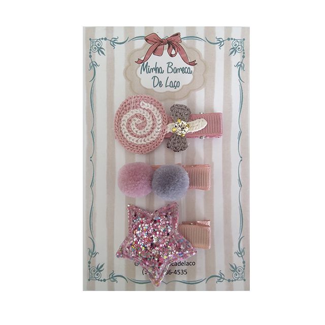 Material: Clip forrado em gorgorão, contém apliques e/ou pompons